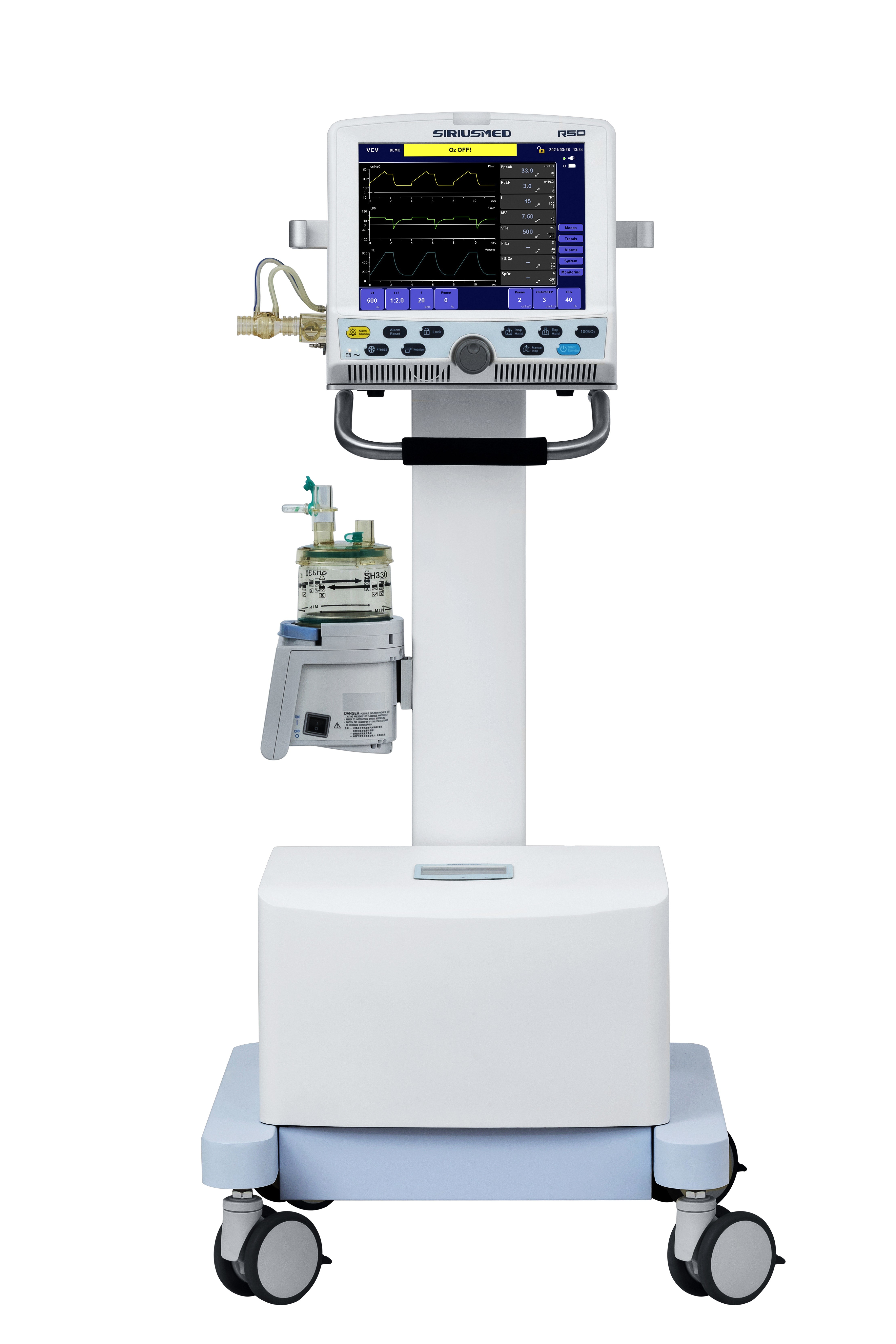 حالت های کافی تهویه: VCV، PCV، SIMV-VC+PSV، SIMV-PC+PSV، SPONT/CPAP+PSV، بک آپ، دستی